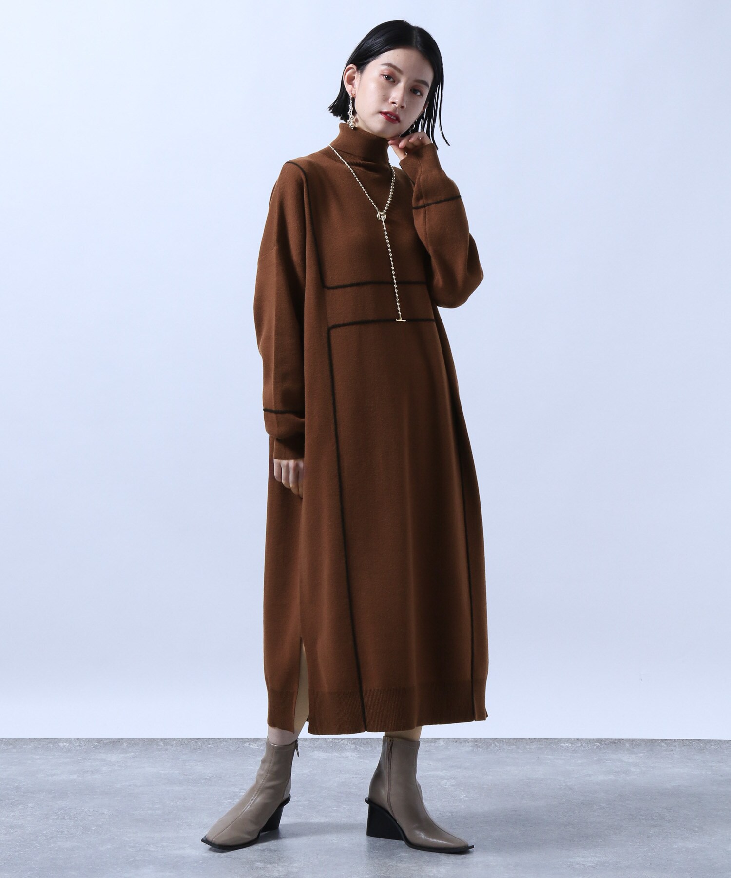 Hare ロングワンピース ハイショクステッチニットワンピース ワンピース ハイショクステッチニットワンピース